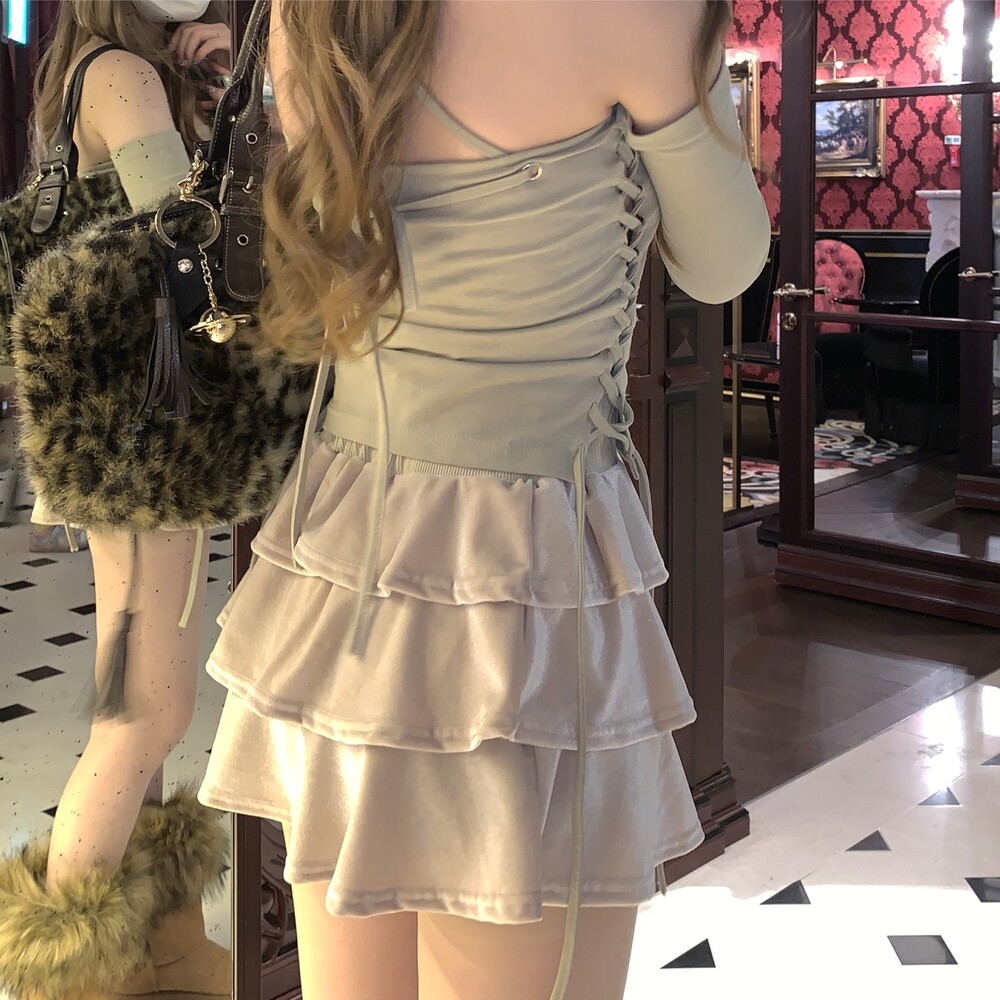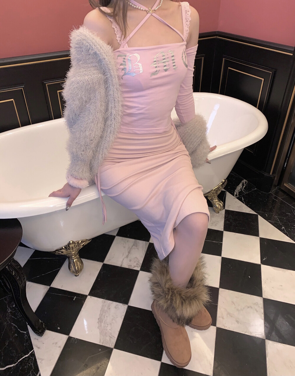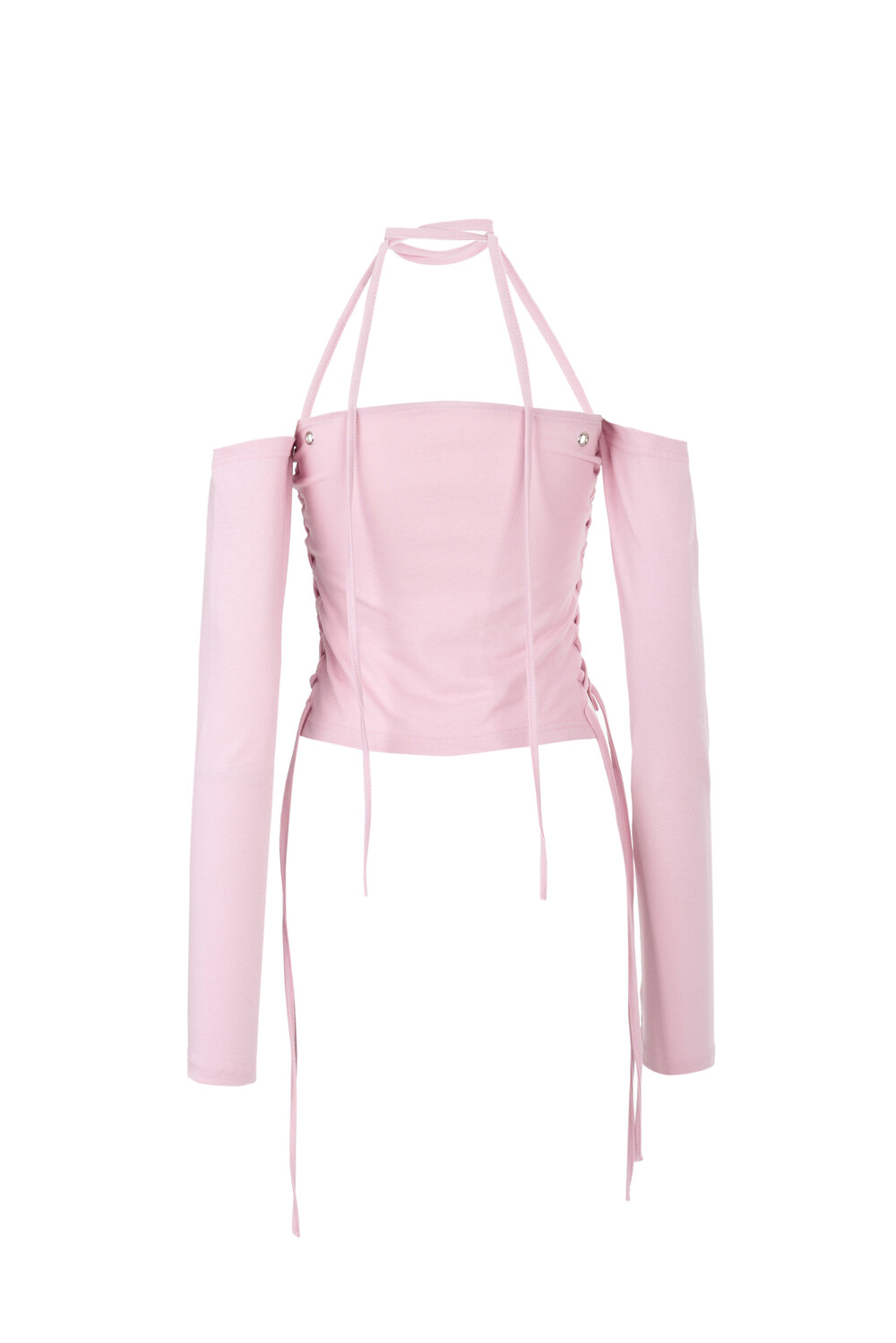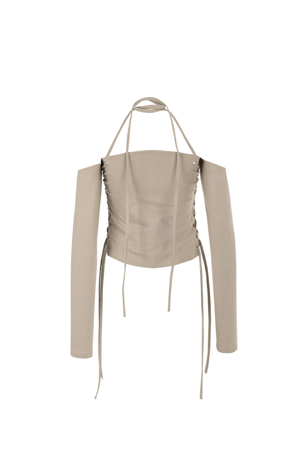 어깨 스트링은 길게 제작되어 홀터넥, X자, 뒷면의 아일렛 구멍으로 빼내어 연출하는 등의 다양한 스타일링이 가능합니다.