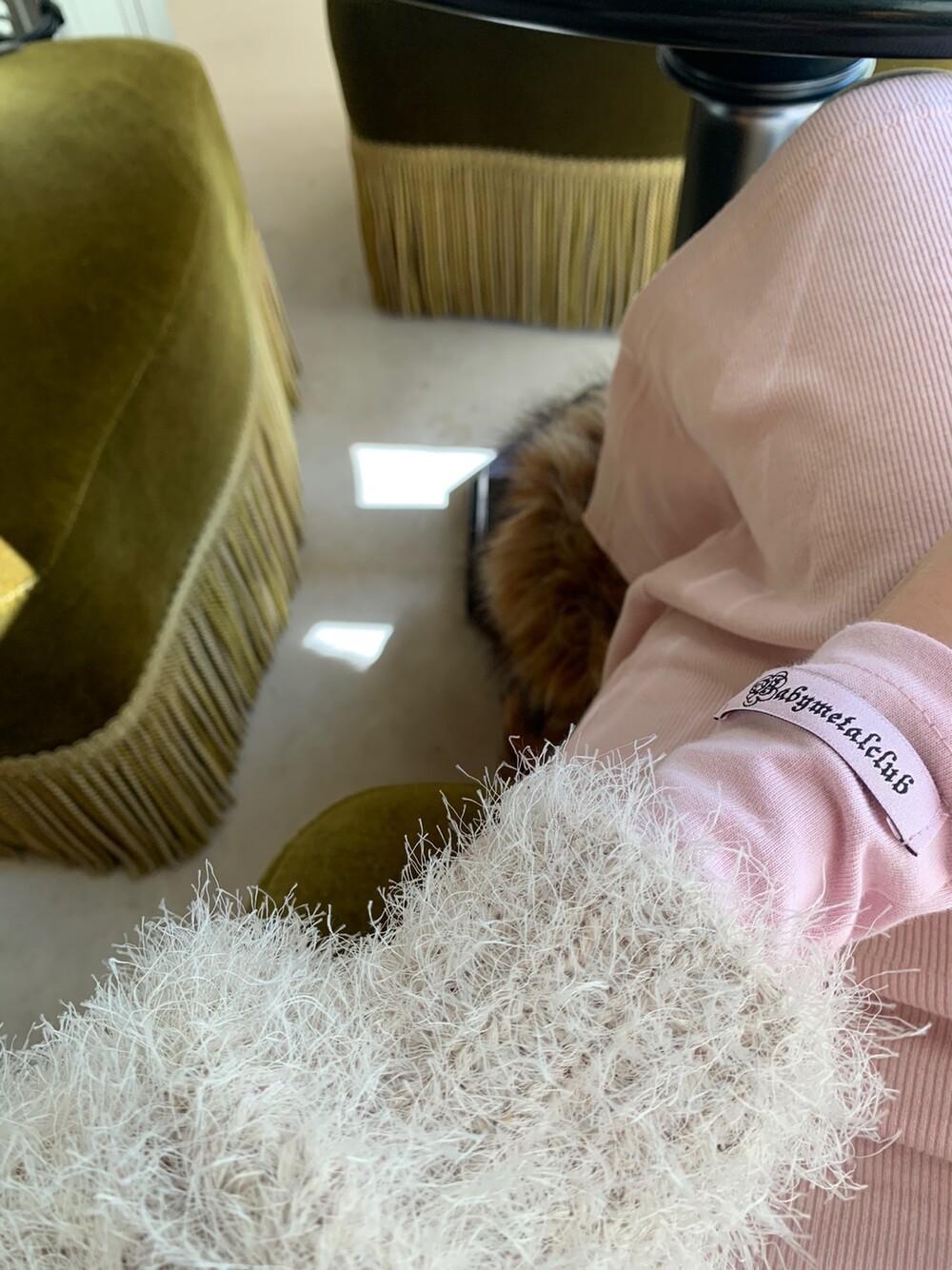 소매 끝에 베이비메탈클럽 직조 라벨이 위치하여 있습니다.